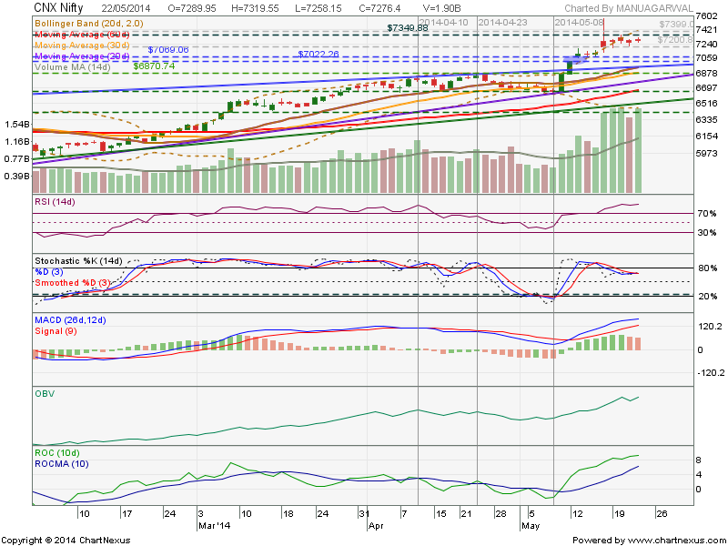 - Bollinger Bands are widening volatility may increase and nifty may try, to ride the upper Bollinger band.
